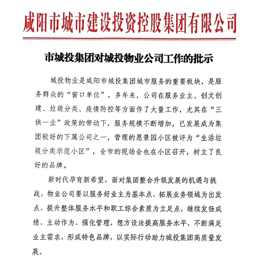 會議開始前,王雅玲宣讀《市城投集團對城投物業(yè)公司工作的批示》。批示中指出,多年來,城投物業(yè)在服務業(yè)主、創(chuàng)文創(chuàng)建、垃圾分類、疫情防控等方面作了大量的工作,尤其在“三供一業(yè)”政策的帶動下,服務規(guī)模不斷增加,已成為集團較好的下屬公司之一,樹立了良好的品牌。希望城投物業(yè)在今后的工作中,繼續(xù)發(fā)揚成績、主動作為、強化管理,想方設法提高服務水平,以實際行動助力城投集團高質量發(fā)展。