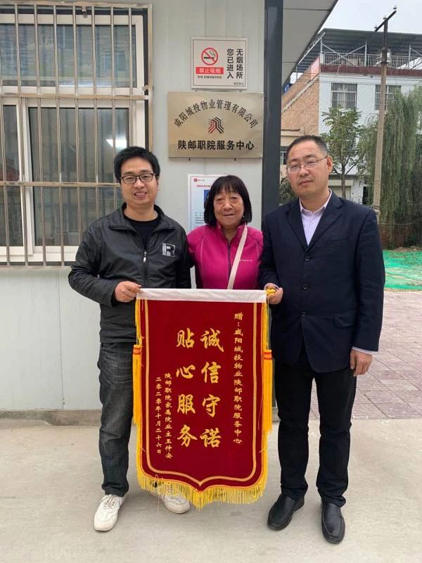 王阿姨是陜郵職院家屬院3號(hào)樓的業(yè)主。子女因?yàn)楣ぷ髅β岛苌僭谏磉叄?gòu)買水電、維修等瑣碎事,都是物業(yè)人員手把手教老人如何在手機(jī)上操作。平時(shí)還幫助老人解決一些日常瑣事,老人為了表達(dá)內(nèi)心的感激之情,送來了錦旗。