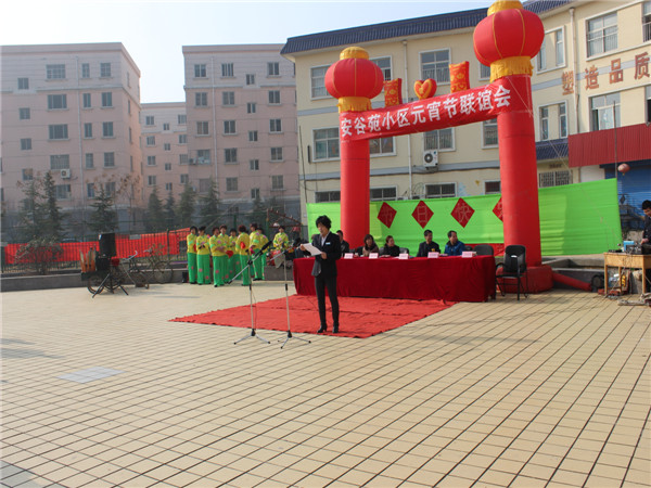 (信息員:董麗娜)2月22日,正月十三,城投物業(yè)安谷苑小區(qū)物業(yè)中心在小區(qū)中心廣場舉辦了元宵節(jié)聯(lián)誼會。咸戶北路社區(qū)主任梁波,陳陽辦事處主任劉英,小區(qū)項目部領導趙培生,小區(qū)業(yè)主代表楊志才、董超龍以及物業(yè)公司副總魏述剛和各部門負責人出席了本次活動。