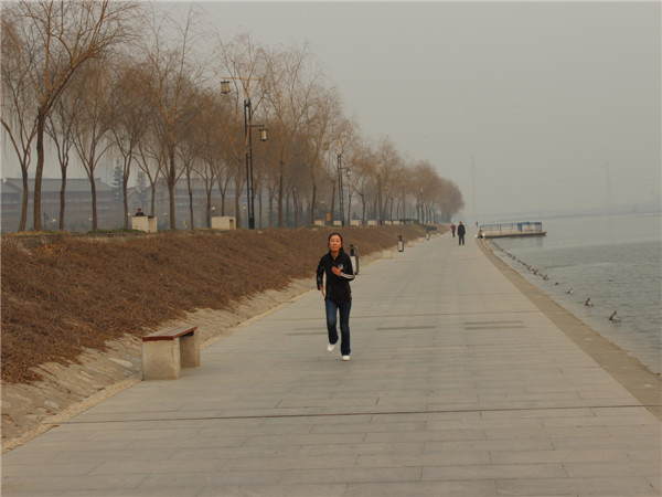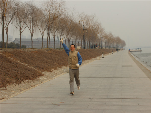 拔河比賽后全體隊員稍事調(diào)整后,如數(shù)參加了長跑比賽,賽程設(shè)置往返于統(tǒng)一大樓對應(yīng)的咸陽湖畔到二號橋。裁判一聲令下,隊員們爭先恐后的離開了起跑線,經(jīng)過四十分鐘左右的角逐,最終男子組張耀成、王威龍、董放放分獲前三名,女子組由李燕君、王幸、史秀娥奪得前三。