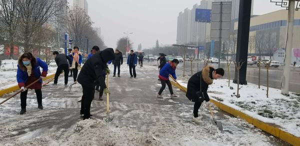 由于氣溫較低,主干道路的雪被壓得很瓷實,清掃工作十分困難。天氣雖然寒冷,但是大家熱情高漲,即使手凍的通紅,也擋不住大家的干勁。都爭先恐后,團結(jié)協(xié)作、井然有序,掃的掃、鏟的鏟,干勁十足,一心想著將路面的積雪盡快清除,經(jīng)過一天的奮戰(zhàn),基本將包抓路段、主干道積雪清掃干凈,確保了廣大居民、業(yè)主的出行安全。